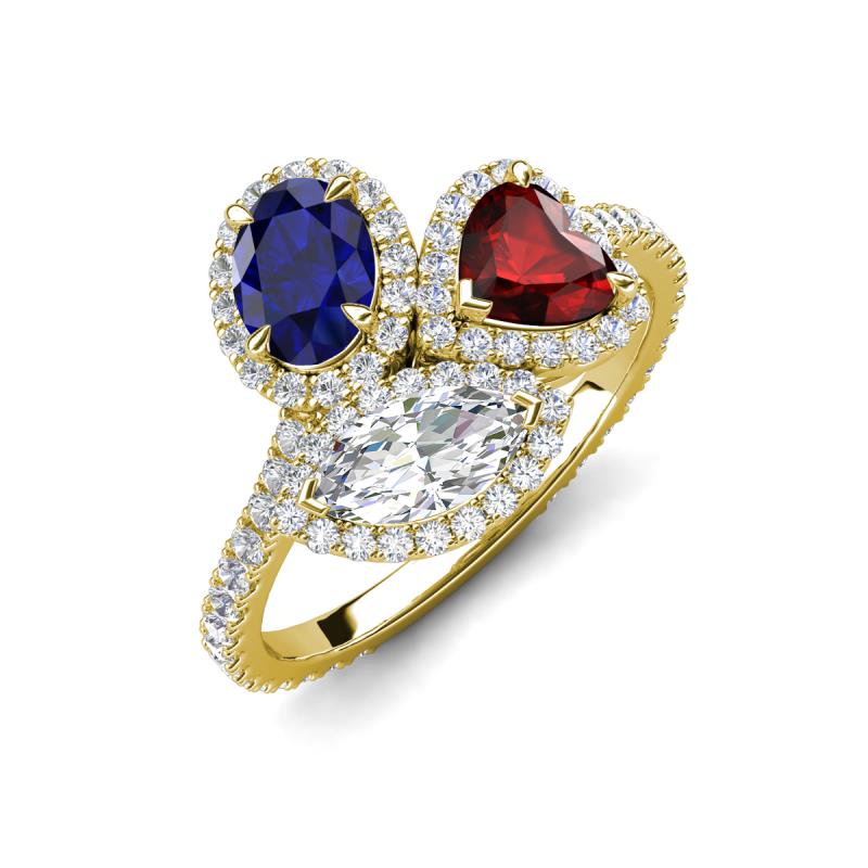 3.28 ctw Multi Shape Oval Created Blue Sapphire, Heart Red Garnet & Marquise Lab Grown Diamond Prong Set Women Three Stone Engagement Ring 14K Yellow Gold More Details ...