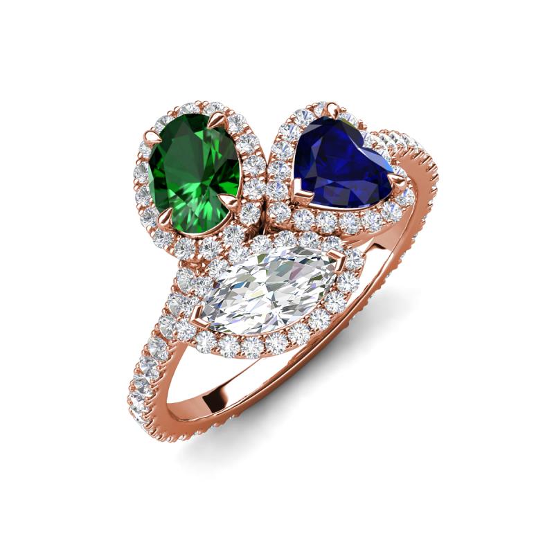 3.28 ctw Multi Shape Oval Created Emerald, Heart Created Blue Sapphire & Marquise Lab Grown Diamond Prong Set Women Three Stone Engagement Ring 14K Rose Gold More Details ...