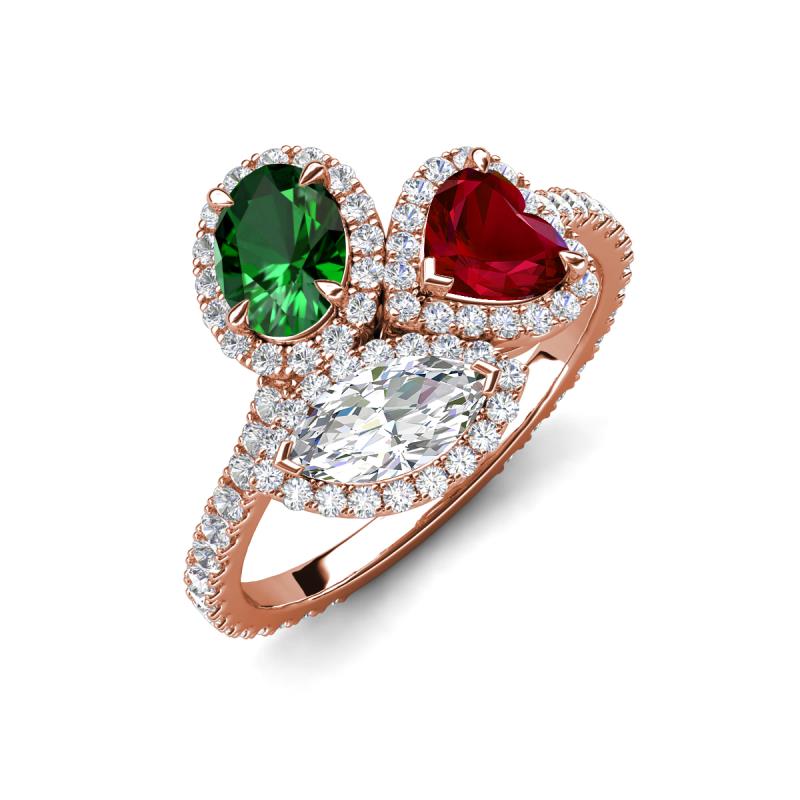 3.18 ctw Multi Shape Oval Created Emerald, Heart Created Blue Sapphire & Marquise Lab Grown Diamond Prong Set Women Three Stone Engagement Ring 14K Rose Gold More Details ...