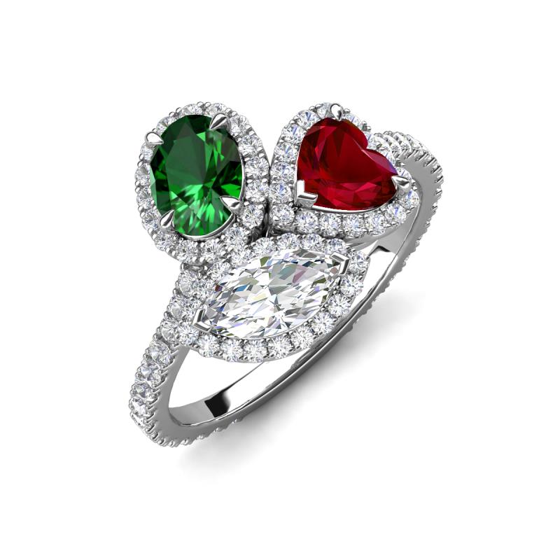 3.18 ctw Multi Shape Oval Created Emerald, Heart Created Blue Sapphire & Marquise Lab Grown Diamond Prong Set Women Three Stone Engagement Ring 14K White Gold More Details ...