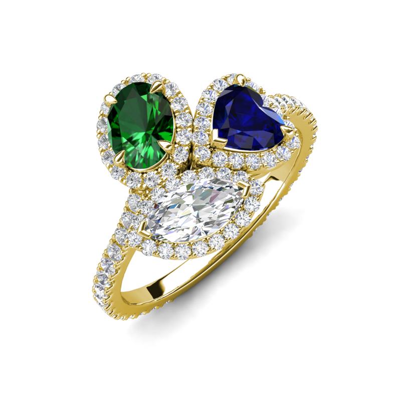 3.28 ctw Multi Shape Oval Created Emerald, Heart Peridot & Marquise Lab Grown Diamond Prong Set Women Three Stone Engagement Ring 14K Yellow Gold More Details ...