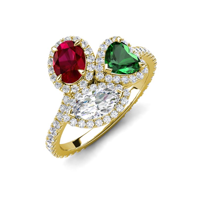 3.51 ctw Multi Shape Oval Created Ruby, Heart Created Emerald & Marquise Lab Grown Diamond Prong Set Women Three Stone Engagement Ring 14 Yellow Gold More Details ...