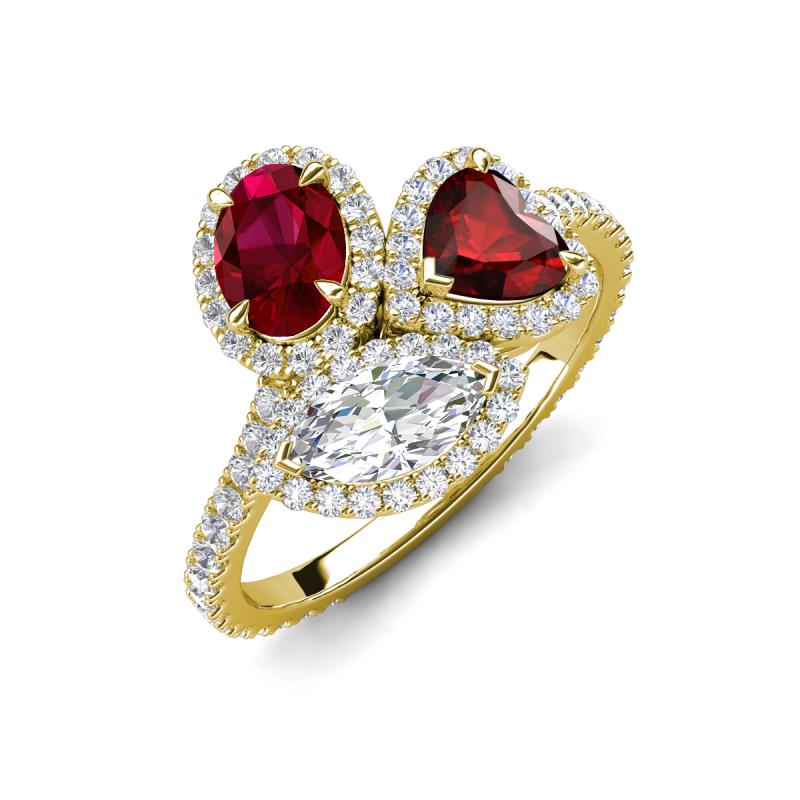 3.71 ctw Multi Shape Oval Created Ruby, Heart Red Garnet & Marquise Lab Grown Diamond Prong Set Women Three Stone Engagement Ring 14K Yellow Gold More Details ...