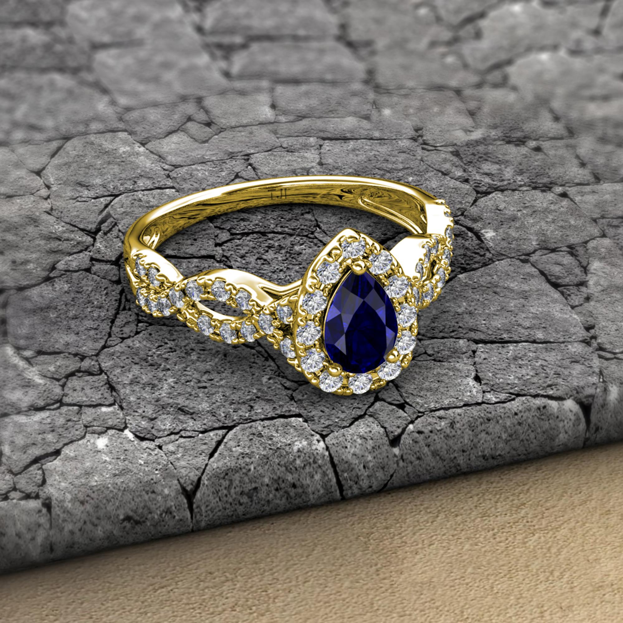Pear Cut (6x4 mm) Blue Sapphire and Diamond Infinity Womens Halo Engagement Ring 1.03 ctw 14K Yellow Gold More Details ...