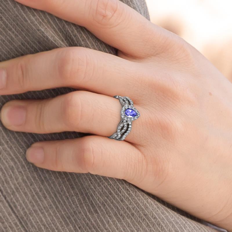 Pear Cut (6x4 mm) Tanzanite and Diamond Womens Infinity Halo Engagement Ring & Matching Diamond Band 1.24 ctw 18K White Gold More Details ...