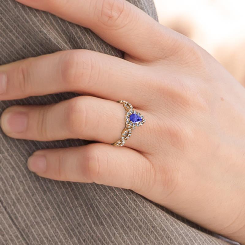 Pear Cut (6x4 mm) Tanzanite and Diamond Infinity Womens Halo Engagement Ring 1.00 ctw 14K Rose Gold More Details ...