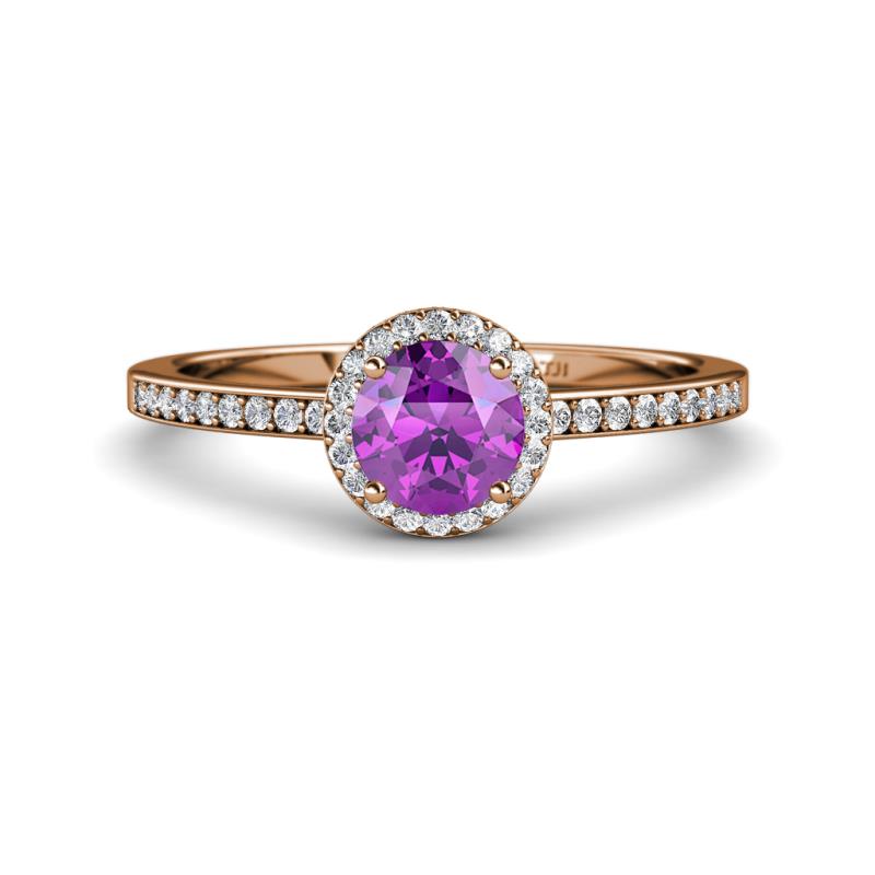 1 1/3 ctw Round Amethyst and Diamond Womens Halo Engagement Ring 14K Rose Gold More Details ...
