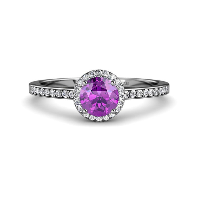 1 1/3 ctw Round Amethyst and Diamond Womens Halo Engagement Ring Platinum More Details ...