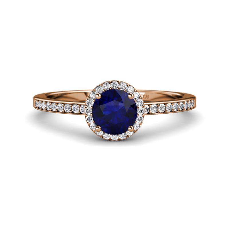 1 3/8 ctw Round Blue Sapphire and Diamond Womens Halo Engagement Ring 14K Rose Gold More Details ...