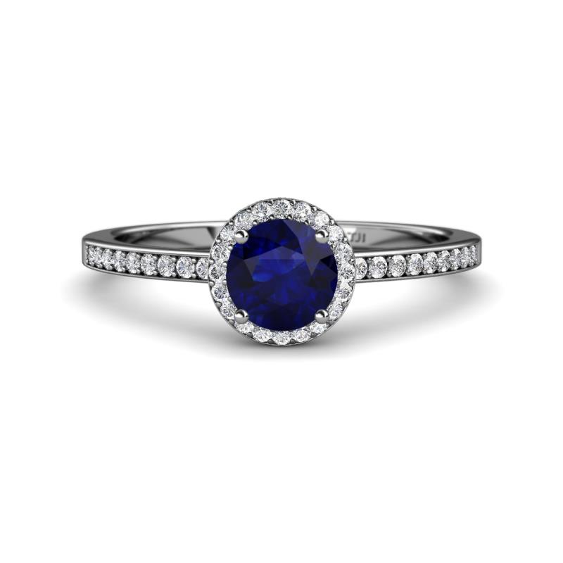 1 3/8 ctw Round Blue Sapphire and Diamond Womens Halo Engagement Ring 18K White Gold More Details ...