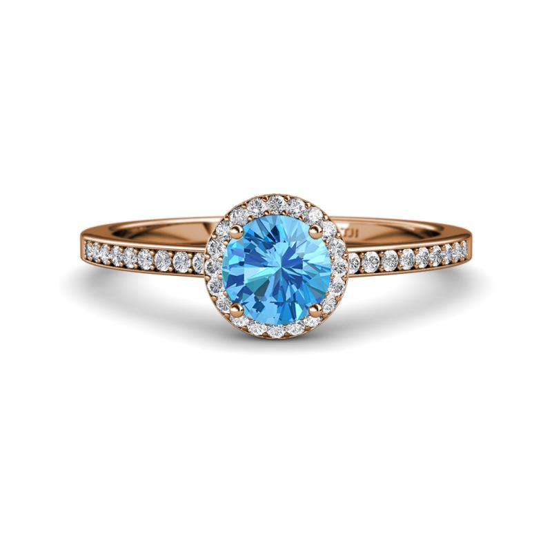 1 3/8 ctw Round Blue Topaz and Diamond Womens Halo Engagement Ring 14K Rose Gold More Details ...