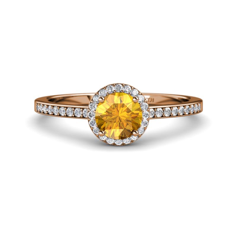 1 1/3 ctw Round Citrine and Diamond Womens Halo Engagement Ring 18K Rose Gold More Details ...