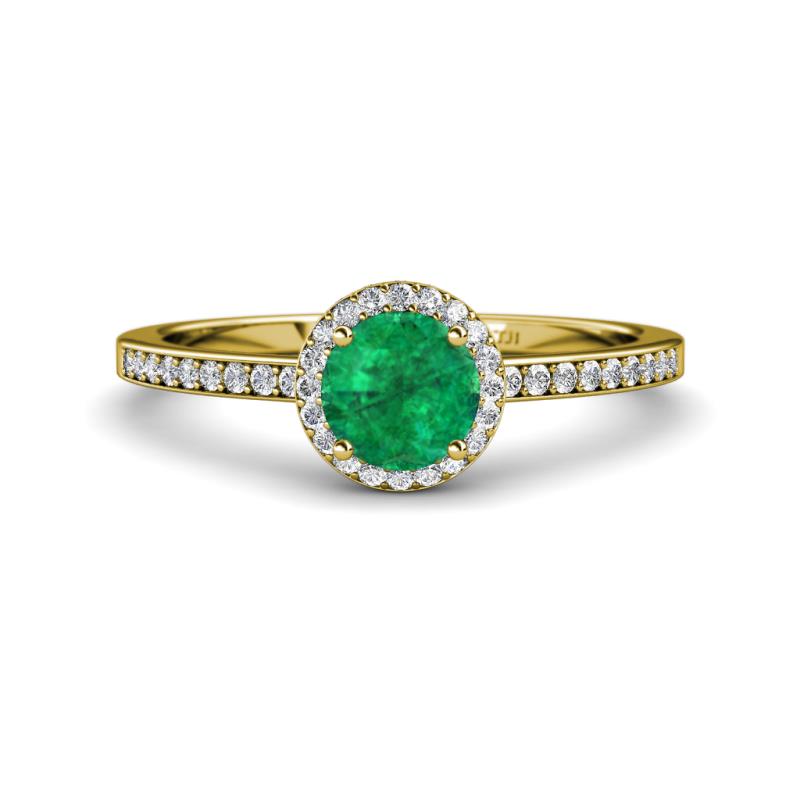 1 1/6 ctw Round Emerald and Diamond Womens Halo Engagement Ring 18K Yellow Gold More Details ...