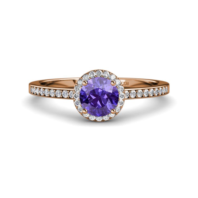 1 1/3 ctw Round Iolite and Diamond Womens Halo Engagement Ring 14K Rose Gold More Details ...