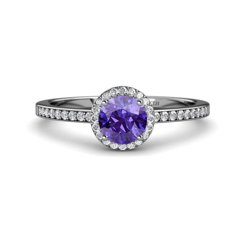 1 1/3 ctw Round Iolite and Diamond Womens Halo Engagement Ring 18K White Gold More Details ...
