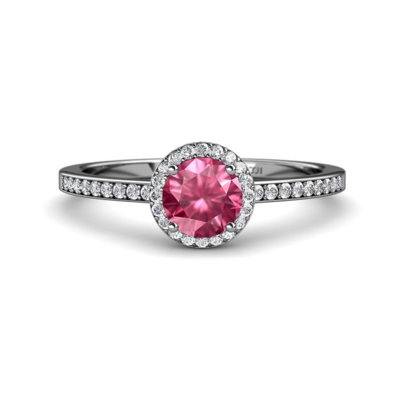1 1/3 ctw Round Pink Tourmaline and Diamond Womens Halo Engagement Ring 18K White Gold More Details ...