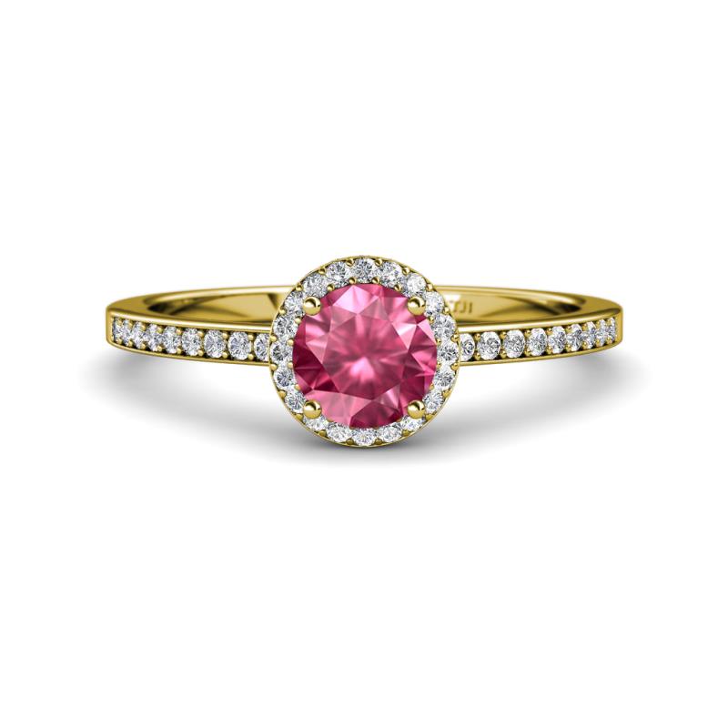1 1/3 ctw Round Pink Tourmaline and Diamond Womens Halo Engagement Ring 18K Yellow Gold More Details ...