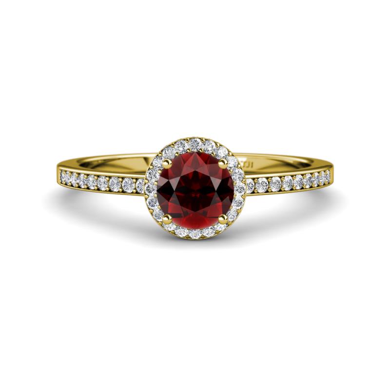 1 1/2 ctw Round Red Garnet and Diamond Womens Halo Engagement Ring 18K Yellow Gold More Details ...