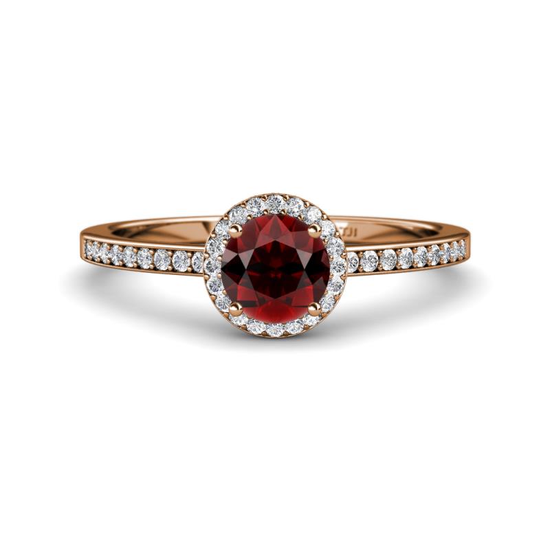 1 1/2 ctw Round Red Garnet and Diamond Womens Halo Engagement Ring 18K Rose Gold More Details ...