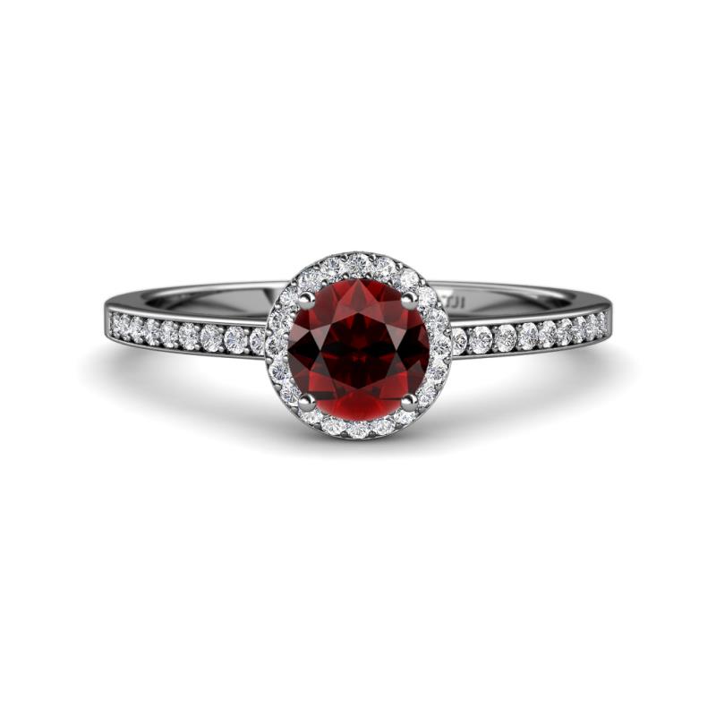 1 1/2 ctw Round Red Garnet and Diamond Womens Halo Engagement Ring Platinum More Details ...
