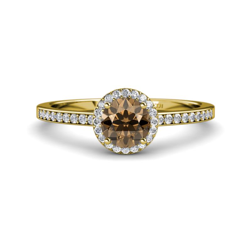 1 1/2 ctw Round Smoky Quartz and Diamond Womens Halo Engagement Ring 18K Yellow Gold More Details ...