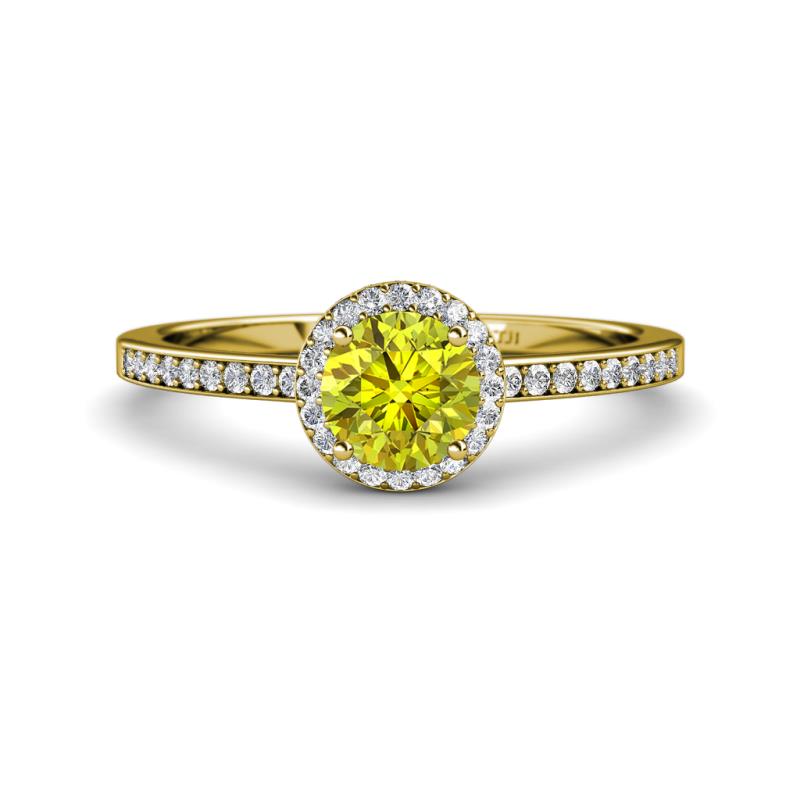 1 1/2 ctw Round Yellow and White Diamond Womens Halo Engagement Ring 18K Yellow Gold More Details ...