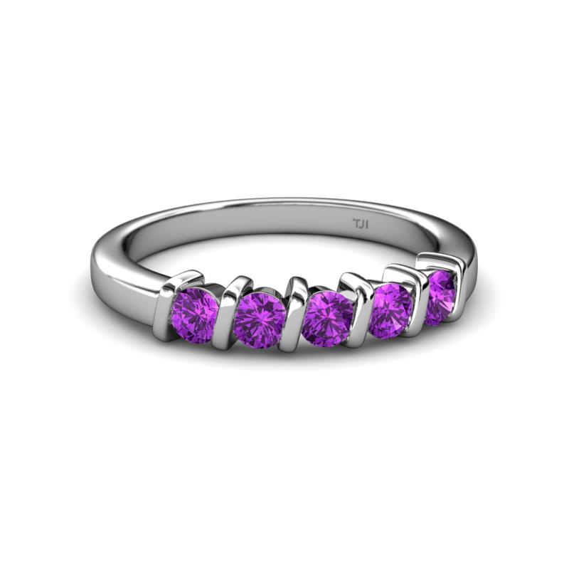 Amethyst 5 Stone Bar Set Wedding Band 0.70 ct tw in 10K White Gold. More Details ...