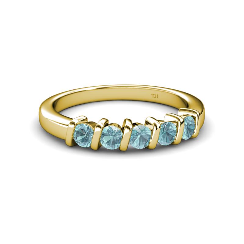 Aquamarine 5 Stone Bar Set Wedding Band 0.70 ct tw in 10K Yellow Gold. More Details ...