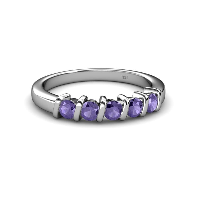 Iolite 5 Stone Bar Set Wedding Band 0.70 ct tw in 14K White Gold. More Details ...