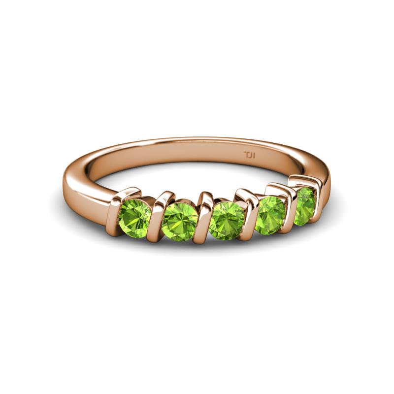 Peridot 5 Stone Bar Set Wedding Band 0.84 ct tw in 18K Rose Gold. More Details ...