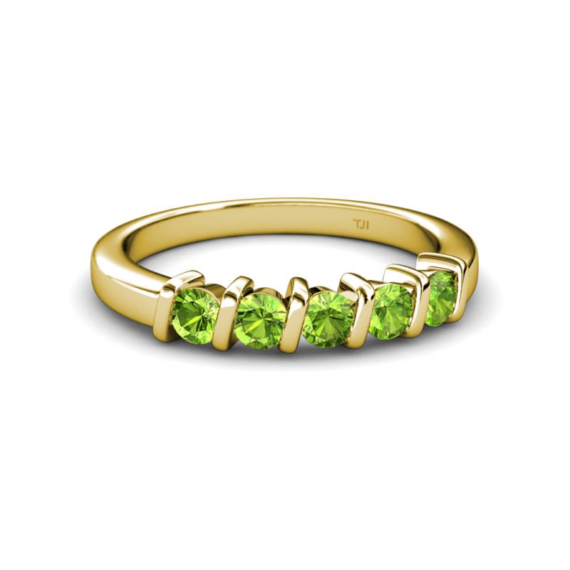 Peridot 5 Stone Bar Set Wedding Band 0.84 ct tw in 10K Yellow Gold. More Details ...