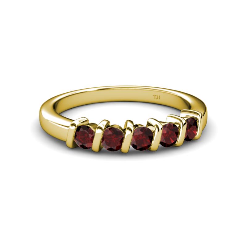 Red Garnet 5 Stone Bar Set Wedding Band 0.84 ct tw in 18K Yellow Gold. More Details ...