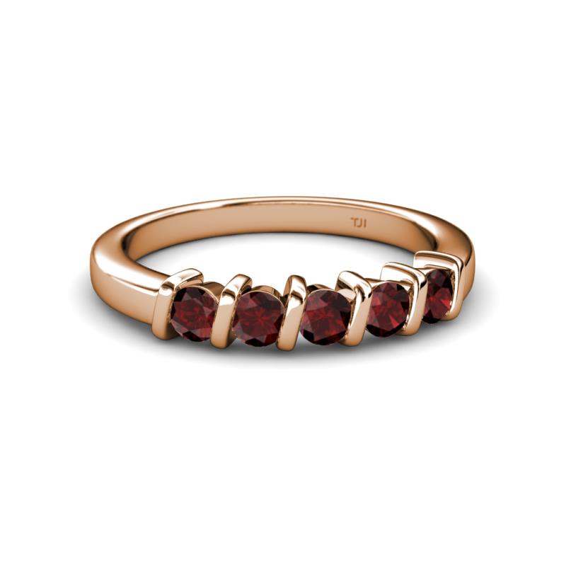 Red Garnet 5 Stone Bar Set Wedding Band 0.84 ct tw in 18K Rose Gold. More Details ...