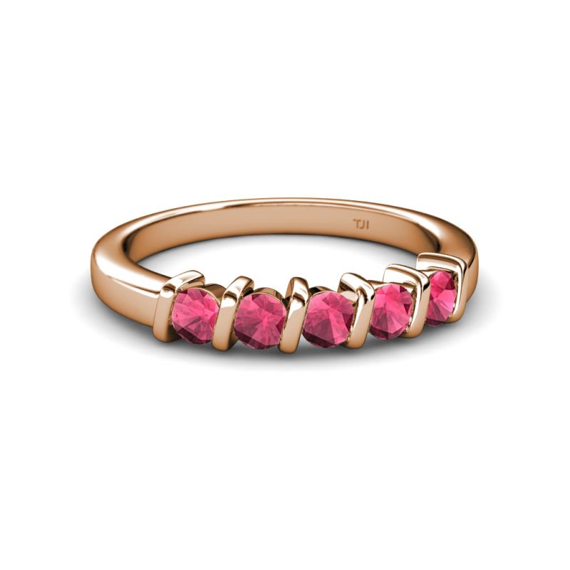 Rhodolite Garnet 5 Stone Bar Set Wedding Band 0.84 ct tw in 18K Rose Gold. More Details ...