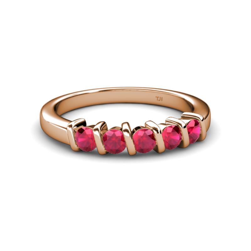 Ruby 5 Stone Bar Set Wedding Band 0.79 ct tw in 10K Rose Gold. More Details ...