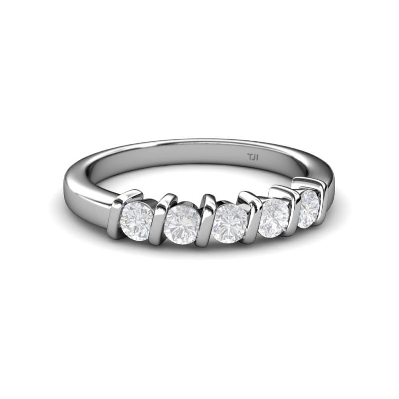 White Sapphire 5 Stone Bar Set Wedding Band 0.79 ct tw in 18K White Gold. More Details ...