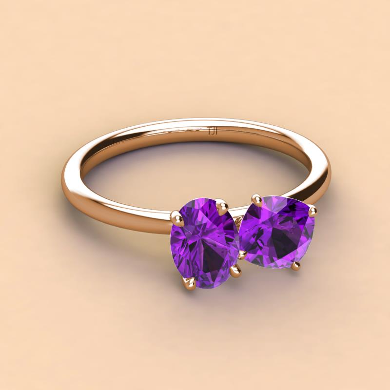 Two-stone Duo ring featuring an Oval & Cushion Shape Amethyst crafted beautifully that will effortlessly blend with her casual outfits and evening dresses.