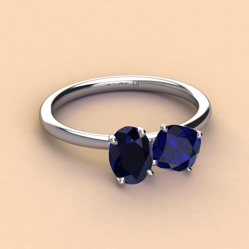 Two-stone Duo ring featuring an Oval & Cushion Shape Blue Sapphire crafted beautifully that will effortlessly blend with her casual outfits and evening dresses.