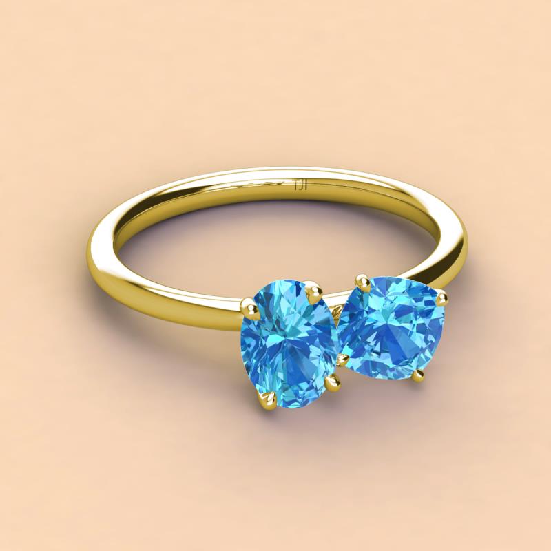 Two-stone Duo ring featuring an Oval & Cushion shape Blue Topaz crafted beautifully that will effortlessly blend with her casual outfits and evening dresses.