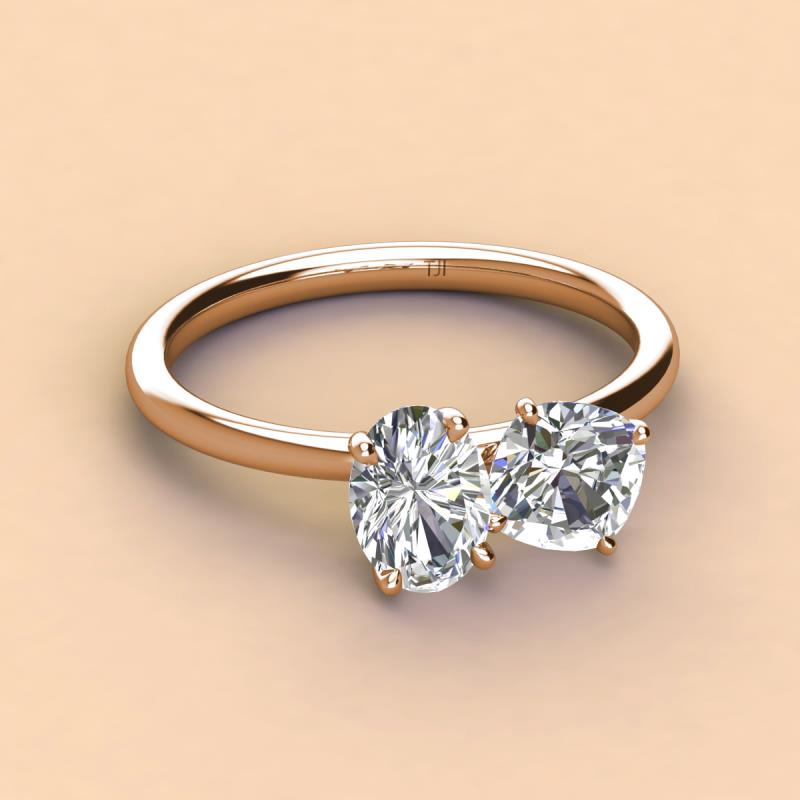 Two-stone Duo ring featuring an Oval & Cushion shape GIA Certified Diamond crafted beautifully that will effortlessly blend with her casual outfits and evening dresses.