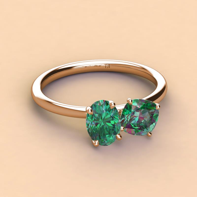 Two-stone Duo ring featuring an Oval & Cushion shape Lab Created Alexandrite crafted beautifully that will effortlessly blend with her casual outfits and evening dresses.