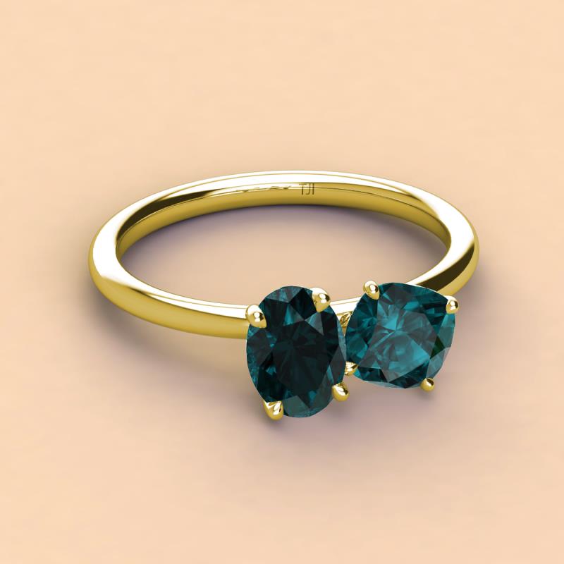 Oval & Cushion Shape London Blue Topaz 2.75 ctw Four Prong Womens 2 Stone Duo Engagement Ring 18K Yellow Gold More Details ...
