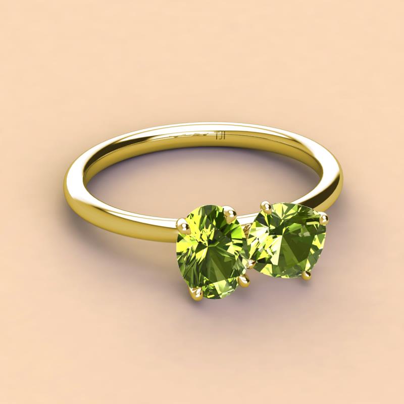 Oval & Cushion Shape Peridot 2.60 ctw Four Prong Womens 2 Stone Duo Engagement Ring 18K Yellow Gold More Details ...