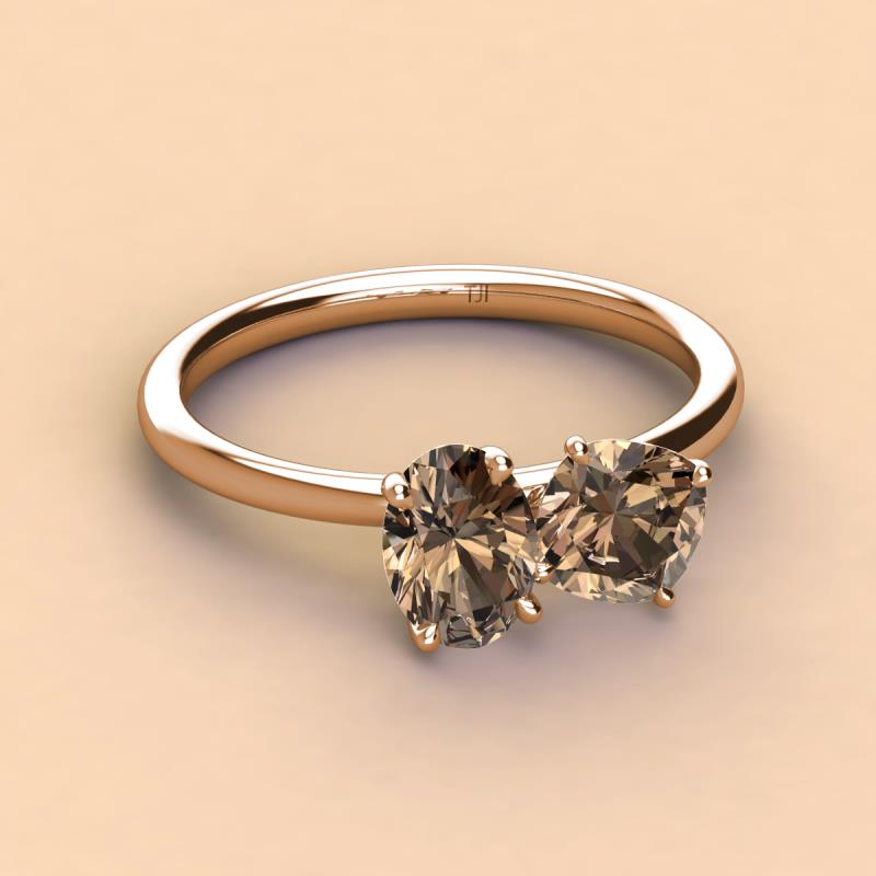 Oval & Cushion Shape Smoky Quartz 2.40 ctw Four Prong Womens 2 Stone Duo Engagement Ring 14K Rose Gold More Details ...