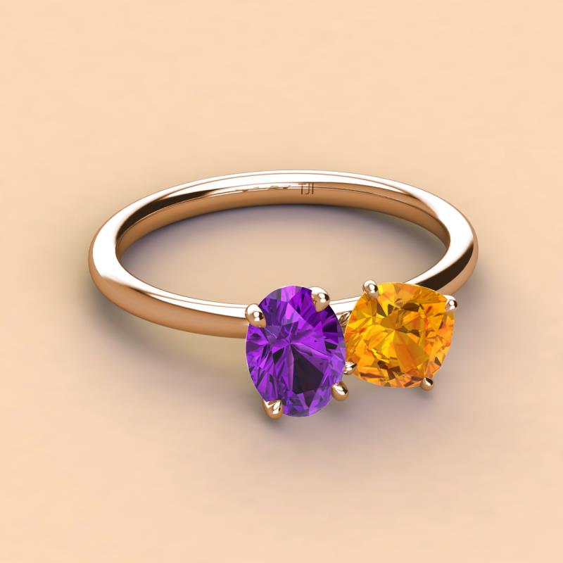 Oval Shape Amethyst & Cushion Shape Citrine 2.20 ctw Four Prong Womens 2 Stone Duo Engagement Ring 18K Rose Gold More Details ...