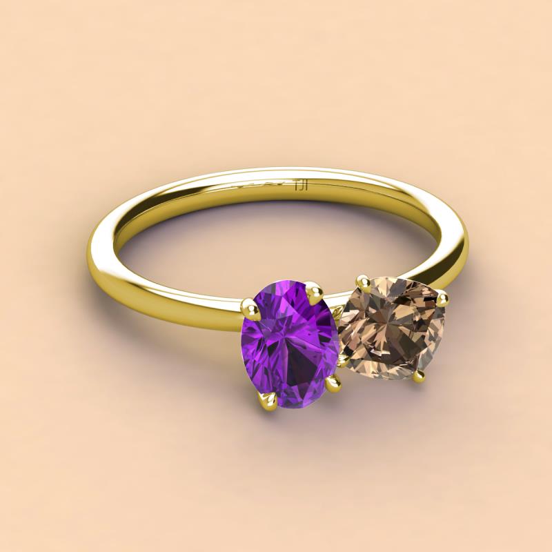 Oval Shape Amethyst & Cushion Shape Smoky Quartz 2.40 ctw Four Prong Womens 2 Stone Duo Engagement Ring 10K Yellow Gold More Details ...