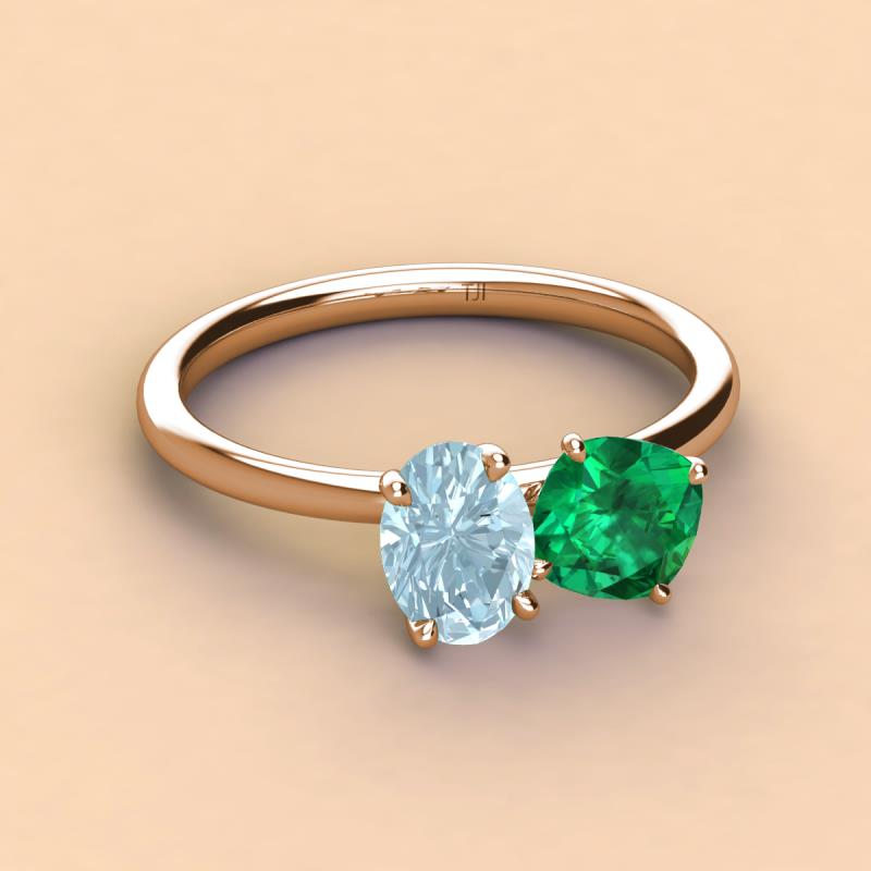 Oval Shape Aquamarine & Cushion Shape Emerald 2.25 ctw Four Prong Womens 2 Stone Duo Engagement Ring 18K Rose Gold More Details ...