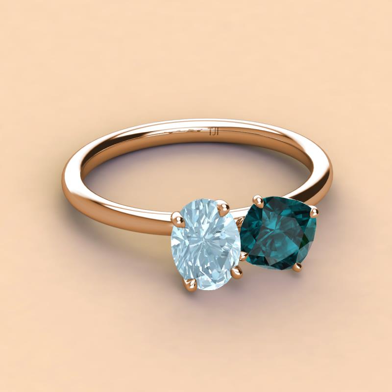 Oval Shape Aquamarine & Cushion Shape London Blue Topaz 2.60 ctw Four Prong Womens 2 Stone Duo Engagement Ring 10K Rose Gold More Details ...