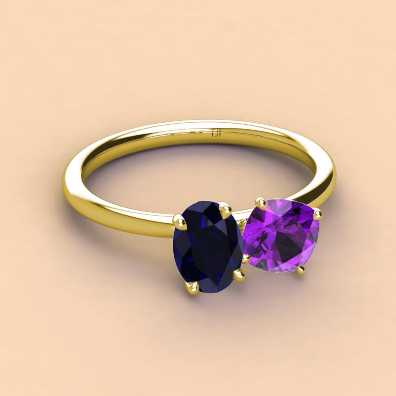 Oval Shape Blue Sapphire & Cushion Shape Amethyst 2.45 ctw Four Prong Womens 2 Stone Duo Engagement Ring 14K Yellow Gold More Details ...