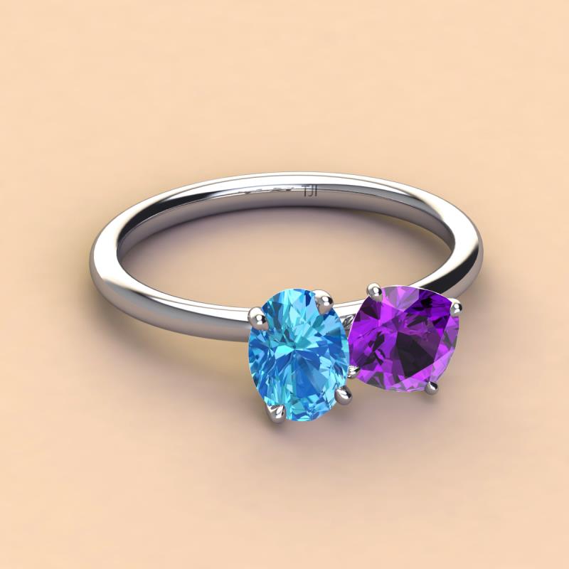 Oval Shape Blue Topaz & Cushion Shape Amethyst 2.35 ctw Four Prong Womens 2 Stone Duo Engagement Ring 14K White Gold More Details ...